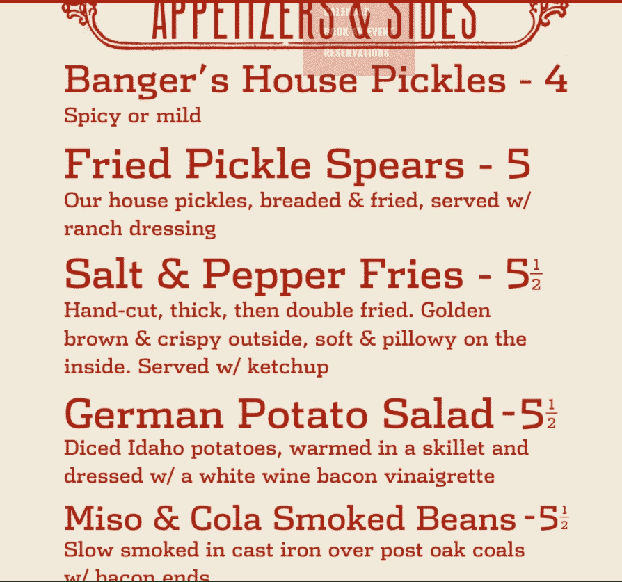 At the end of the day, Banger's is all about being a wonderful place to eat, drink and hangout. Not too rowdy, not too laid back, just a good old fashioned good time. Homemade sausage, craft beer, pig roasts, beef jerky, pickled vegetables, spring days in Texas, Sunday brunch, and all forms of Americana & country music are a few of their favorite things. Banger's understand that the best way isn't always the fastest or easiest way, and they're ok with that. They believe that quality food, made from scratch, can still be sold at an honest price. Banger's have a commitment to excellence and deeply believe in the principle of hospitality. We truly look forward to being of service. They'll see you when you get here.